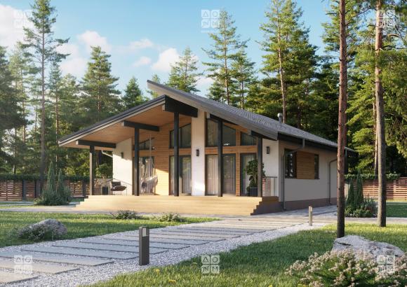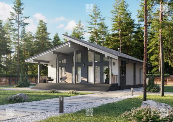 Проект ПИКАССО МИНИ — эффектный, технологичный, функциональный, надежный и компактный. Здесь достаточно места и для общения, и для уединения. Большие панорамные окна создают ощущение свободы и стирают границы между внешним пространством и внутренними помещениями. Слева от входа располагается приватная часть дома: 2 спальни, ванная комната и котельная, а справа — наполненная светом гостиная - кухня и открытая с трех сторон терраса, где вы будете проводить все время, пока позволяет погода.