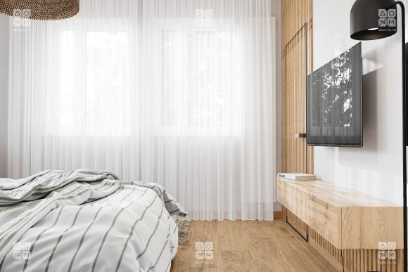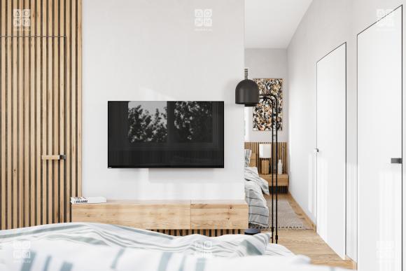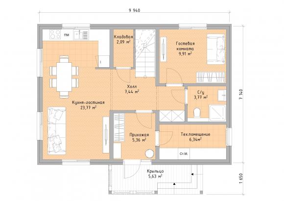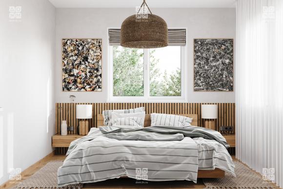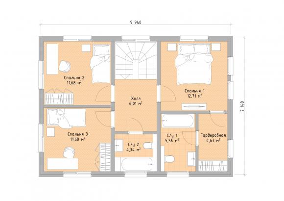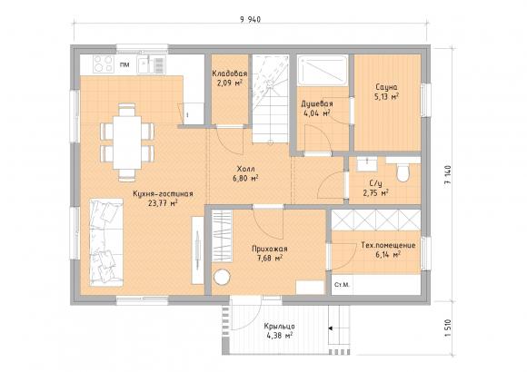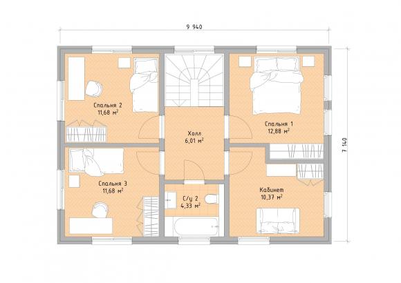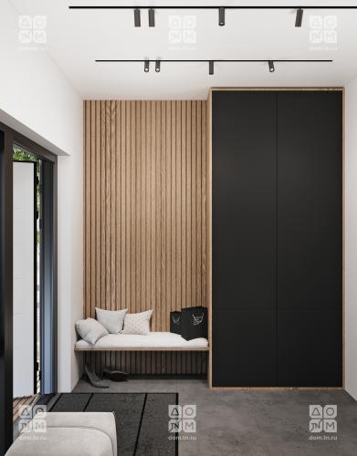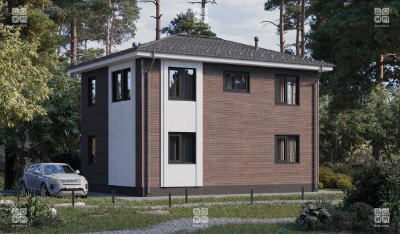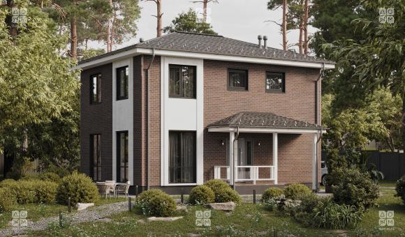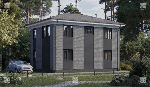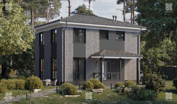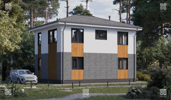 Строгий и лаконичный двухэтажный дом ПОЛЛОК площадью 115 м² с тремя спальнями на втором этаже и гостевой комнатой на первом. К главной спальне примыкает собственная гардеробная и ванная комната. Гостиная светлая из-за больших окон, выходящих на три стороны света. Кладовая спряталась под лестницей, а в котельную можно попасть из прихожей. Дом венчает пологая вальмовая кровля с холодным чердаком. Очертания навеса крыльца повторяют очертания крыши. Небольшое пятно застройки - одно из преимуществ двухэтажного дома.
